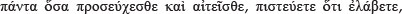 ['That is why I tell you, whatever you ask in prayer, believe that you have received it, and it will be yours'] (11:24).