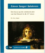 Liever langer luisteren ('Rather listen longer') is a timeous contribution to the field of Practical Theology, focused on Homiletics. This short work (43 p.) by M.J. Kater represents the full text of his inaugural lecture at the Apeldoorn Theological University in 2017.