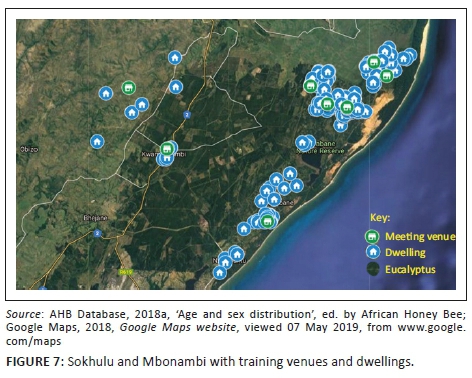 This project started in March of 2016 (the middle of the honey flow - see Figure 1). The community areas of Sokhulu and Mbonambi were selected as prime areas because of their profusion of Eucalyptus grandis subspecies (an excellent bee plant - see Figures 6, 7 and 8).