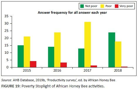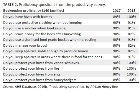 When beekeeping proficiency was measured, an overall improvement was also seen as illustrated in Table 2. The only indicator that decreased, was keeping apiaries small enough. This aspect of the project caused a failure of production in other areas due to overstocking and is therefore an area of concern.