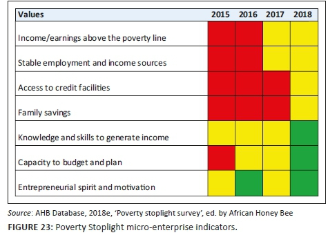 Figure 19 depicts the positive change as influenced by AHB over the four years. The increase of 'not poor' for the self-worth indicators in 2018, is attributed to the starting of savings groups in 2017. Overall poverty is seen to reduce, indicating that the training and mentorship activities, actioned by AHB, are having the desired reaction.