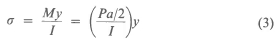 In order to determine the fringe coefficient of the material, a beam in pure bending was used as depicted in Fig. 2. Light-field photographs of the fringes were taken in the midsection of the beams. In this region, the fringes were parallel and symmetric with respect to the neutral axis, x. Using