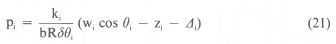 The radial strain of the elastic foundation ti is a function of the shoe displacement wi, the rim radial deformation zi and the clearance Δi between the unloaded brake shoe and rim.