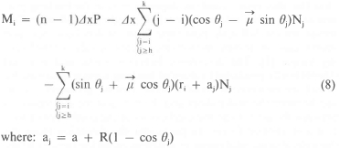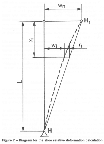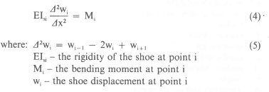 For the shoe point of support, viz. for x0 = 0 displacement w0 = 0. Bending moment in shoe point i (figure 2) can be calculated from equation (8):