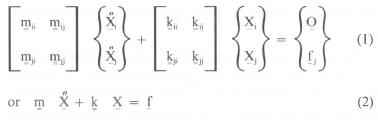 The vibration of a continuous substructure, that is one with an infinite number of degrees of freedom, can be approximated by a set of motion equations valid at a finite number of points in the structure. The structure is therefore in effect discretised to a finite number of lumped masses (m) and stiffnesses (k). The equations of motion at these finite number of node points for a substructure can be written in matrix form as follows (neglecting damping):