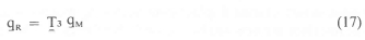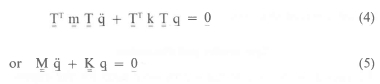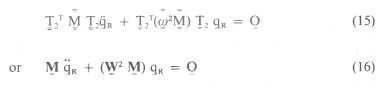 The mode shapes or eigenvectors T3 resulting from the solution of equation (16), however, present a problem, as they are not expressed in physical coordinates. Equation (16) with independent coordinates qR can be rewritten in modal coordinates qM by using the following transformation equation: