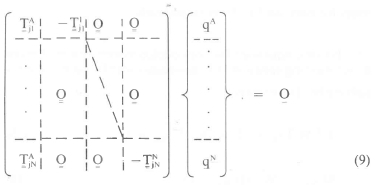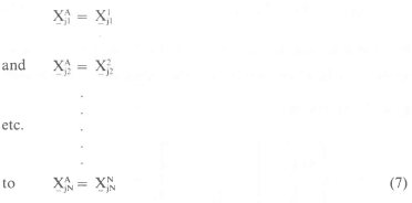 where j1,j2, ... jN are the junction nodes between structure A and substructures 1, 2 ... N respectively. The displacements of the junction nodes of structure A at its junction with substructure 1 are given by XAji. The corresponding vector of displacements for junction points of substructure 1 is denoted by XAji.