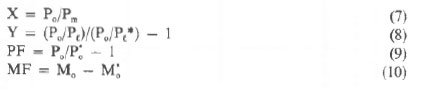 Oor die algemeen geld dat daar 'n paraboliese verband bestaan tussen die drukverskil oor 'n weerstand en die volumevloei deur die weerstand. Daar is eksperimenteel vasgestel dat hierdie verband ook geld vir die komponente wat hier beskou word, soos in figuur 2 getoon. Veranderings in M0, P0 en die massavloei het daartoe gelei dat die kurwe op- en afgeskuif het, sonder dat die vorm van die kurwe veel verander. Die elemente is dus wiskundig gemodelleer deur 'n basiese paraboliese verband tussen volumevloei en P0/Pm met voorsiening vir afwykings veroor-saak deur veranderings van die ander parameters, 'n Kromme-passing is gedoen om die verband tussen volumevloei en PG/Pm te bepaal. Die vergelykings vir vloei het soos volg daaruit gesien: