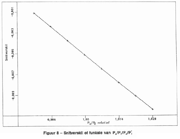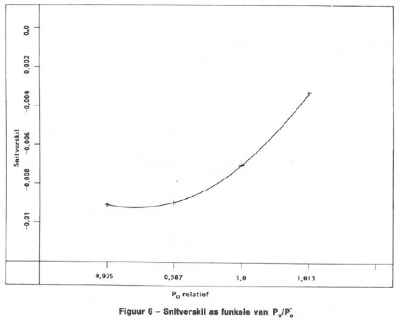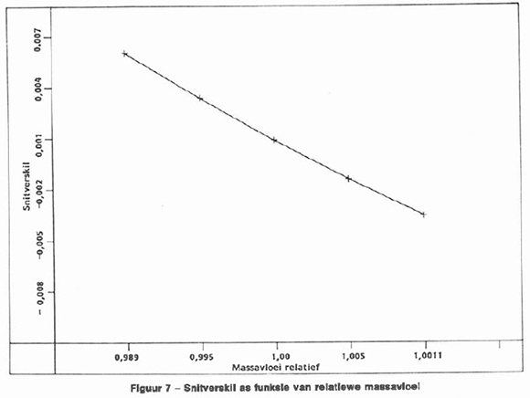Die invloed van veranderings van die vier beheerbare parameters op die massavloei verdeling van die stelsel in figuur 3, word in figure 5 tot 8 getoon. Die waardes word uitgedruk in terme van die verskil van die berekende waarde en 'n verwysingswaar-de. Oor die algemeen het al die parameters 'n redelike groot invloed op die massavloeiverdeling. Die eksperimenteel gemete massavloeiverdeling stem by verwysingstoestande goed ooreen met die berekende waarde. Die invloed van veranderings van die parameters is eksperimenteel nie volledig ondersoek nie, maar uit enkele lesings blyk dat die gemete en voorspelde waardes in 'n redelike mate ooreenstem.