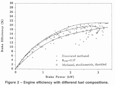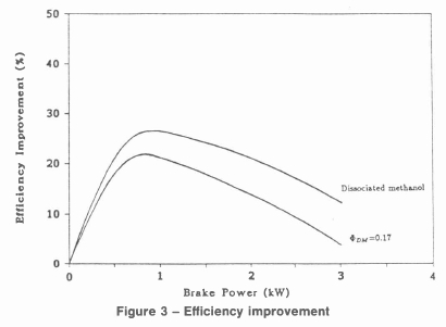 • The proportion of dissociated methanol in the fuel which gives maximum efficiency varies from 100 percent at no load to 40 percent at maximum load