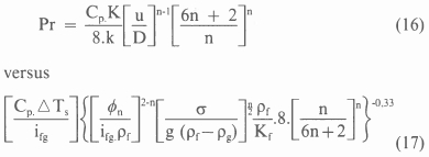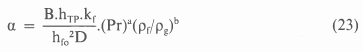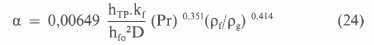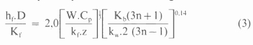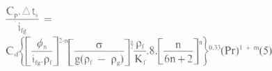 where the value of the constant Csf is determined experimentally, and that of the exponent m is given as O for water and 0.7 for other liquids. For pseudoplastic fluids this equation expressed in terms of the consistency and flow behaviour index is