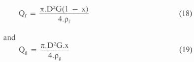 The acceleration and elevation losses can be calculated from a momentum equation if the mass vapour quality and the void fraction are known. The frictional component must however be determined empirically.