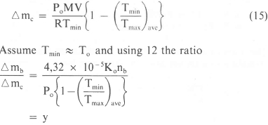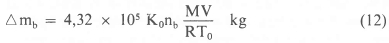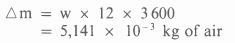 Integrating this equation over a period of 12 hours, and using equation 9, the mass of air which will leak in can be shown to be