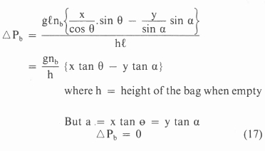 Substituting this result into equations 11 and 16 means that ηb = 100% for a vertically suspended ideally flexible bag hanging in the shape as assumed.