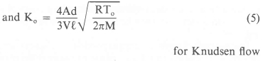 Even if laminar and Knudsen flows occur simultaneously, as would happen in a practical case, the relationship given by equation 3 will still hold except that Ko will be a more complex function of A, ρo, d, ℓ, π, M, R and To.