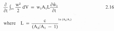 The flow through the actuator disc is assumed incompressible and the flow area A, a function of the steady flow field only. If the area of the control volume is assumed to vary linearly the first term in equation 2.15 is given by