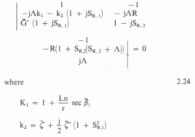 To obtain a non-trivial solution the eigen-value A of the system is evaluated. This is derived from the determinant of the system