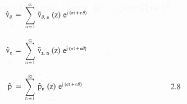 Substitution of these Fourier series into equations 2.5-2.7 and by defining a disturbance stream function ϕ such that