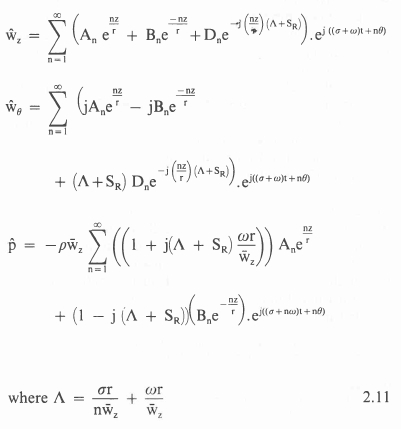To obtain an analytical solution it is assumed that the perturbations are periodic in time and the θ - direction. Then for each blade-free region the perturbation quantities can be given in the form of a Fourier series