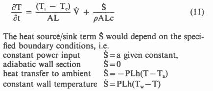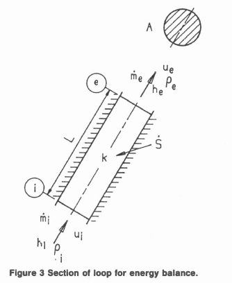 Neglecting axial conduction, viscous dissipation, kinetic energy and potential energy an energy balance for a section of the loop as given in figure 3 may be written as: