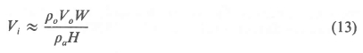 Consider the end of the heat exchanger at which recirculation occurs. For purposes of analysis, the heat exchanger and fan assembly is represented by a straight line at an elevation H above ground level as shown in Figure 3. Let the width of the heat exchanger be W. It is assumed that the air velocity entering the cooling tower along its periphery, Vi, is uniform and constant and in the horizontal direction. The outlet velocity, Vo,is similarly uniform and in the vertical direction.