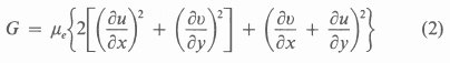 The production term G in the equations for temperature, turbulence kinetic energy and turbulence dissipation rate is defined as follows: