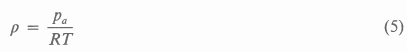 where pa = 1.013 ×10s5 Pa and the gas constant is taken as R = 287.1 m2/(s2 • K).