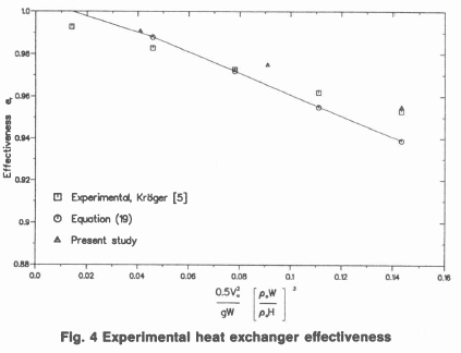 If, however, it is assumed that the recirculating air mixes perfectly with the inflowing ambient air, Kröger [5] shows that the effectiveness is then given by: