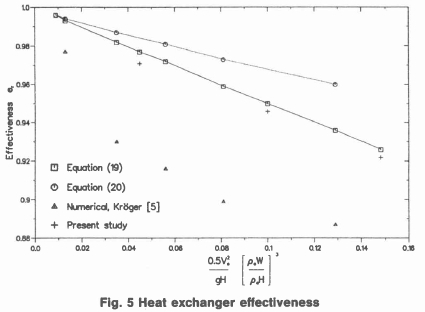 If it is assumed that the warm recirculating air does not mix at all with the cold ambient air, Kröger [5] shows that the effectiveness is given by:
