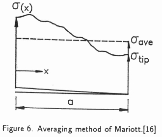 The first theory (I) was used in a simplified form, following Bueckner [15] and Mariott,[16] allowing K1to be determined from the stress distribution in the uncracked body. The stresses existing in the uncracked body, which would be able to close the crack, were applied along the surface of the opened crack. However, the exact stress distribution was replaced by an approximation, which in the case of a crack starting at the surface (see Figure 6) can be written as
