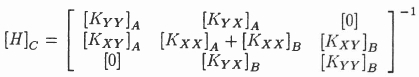 The general stiffness formulation involves the matrix inversion of the components structures' FRFs. If one considers two structures A and B which are to be joined together at degrees of freedom X, to form a structure C, then FRF matrixes for structures A and B may be written, respectively, as: