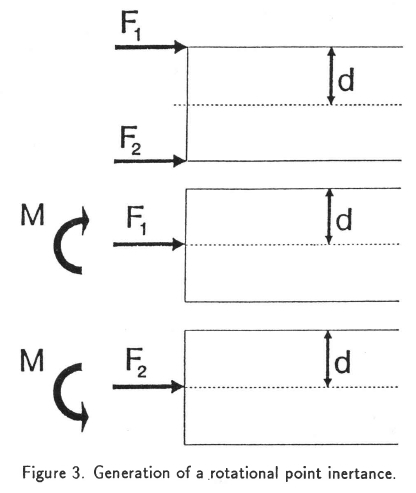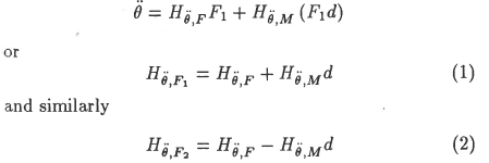 is the FRF relating the angular motion of the beam produced by a centreline force, which is independent of the magnitude of F1or F2. Upon differencing equations 1 and 2, the expression for the required point inertance becomes: