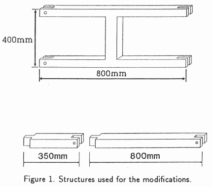 The structures used as a basis for the proposed modifications are illustrated in Figure 1. The first, an H-frame, was machined from a 25-mm thick mild steel plate, while the remaining two beams were machined from a 25-mm square mild steel bar. All the structures had specially machined ends, enabling interconnection with the aid of locating pins.