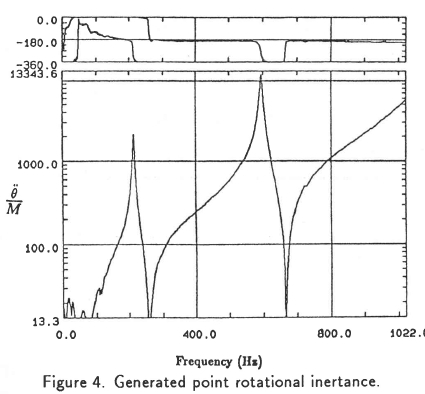 This expression was applied to the FRFs of the component beams. The generated point rotational inertance for the longer beam is illustrated in Figure 4. This FRF exhibits the characteristics of a point inertance. However, it displays severe noise below 150 Hz.
