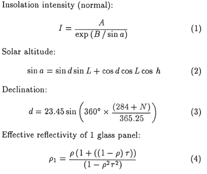 To provide a comparison with the actual energy absorption, insolation calculations made use of the following equations:[2; 3; 4]