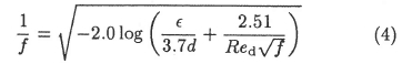 The friction factor in equation (3) is given by Colebrook's equation [7]
