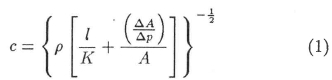 When calculating ∆p using equation (7), the experimentally determined values of c and ∆v were used. Equation (7) can also be expressed in dimensionless form as a pressure surge coefficient