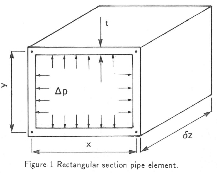 Jenkner's [2] analysis of thin walled rectangular pipes allowed for rotation of the pipe wall corners with no restriction on them being fixed in space, thus allowing him to take account of stretching of the side-walls as well as bending deflections. For a thin walled square section pipe,