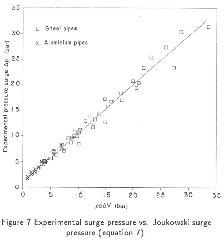 this functional relationship is plotted in Figure 8 for the measured surge pressures and velocities.