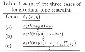 The resulting functions for Φt(x,y) are shown in Table 1 where the stretch of the pipe wall is modified by the inclusion of Poisson 's ratio for the pipe material. Equation (1) can therefore be written as