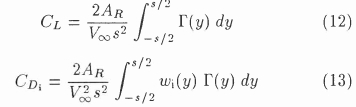 After a converged solution for the circulation distribution has been obtained, the lift and induced drag coefficients of the hydrofoil can be computed in the usual manner: