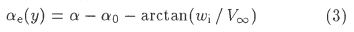 The effective angle of attack is given by