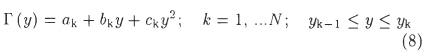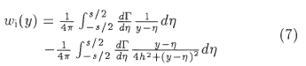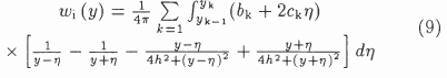 Equation (12) is evaluated by utilizing the quadratic curve fits of equation (8), and equation (13) in a similar manner by assuming that the product Wi[(y)Γ(y) also varies quadratically over every section.