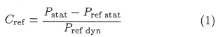 In two-dimensional airfoil theory it is customary to define the pressure distribution along an airfoil surface by means of a dimensionless coefficient of pressure, expressing the pressure with reference, to the static and dynamic pressures of the undisturbed stream. Since the 'undisturbed stream' velocity varies inversely with radius in a radial cascade flow, the pressure at a defined location in the model is used as reference. This location is termed the 'reference pressure station' and it was chosen to be at the cascade inlet radius, midway between two adjacent turbine blades. The dimensionless reference pressure coefficient is defined as: