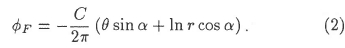 , the flow velocity potential of the free spiral vortex at a point (r, θ) is then (from Anderson [7])