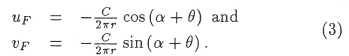 To solve the system of equations the free spiral vortex parameters C and αmust be known. It can be proved that C acts only as a constant of proportionality of the flow velocities and that it cancels out of any ratio of one velocity to another. As will shortly be shown the pressure distribution around the blade is expressed by means of such a ratio and consequently any convenient value may
