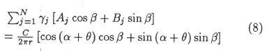Distributions of flow singularities are set up over all panels on all blades. Only vortices are used as singularities. The strength of the vortex distribution varies linearly over each panel and its value in the j-thnode is denoted by γj. It may be shown that the total flow velocities in the x and y directions due to the vortex distributions on all panels on all blades can be expressed as