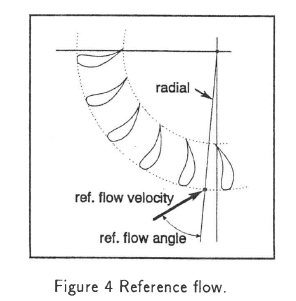 A 'free stream' is commonly defined during the analysis of the flow around single profiles or in rectilinear cascades. The equivalent for the radial cascade is a free spiral vortex which follows from the conformai transformation mapping a Cartesian coordinate system onto a polar system as detailed for example by Wislicenus [5] and Scholz.[6] The free spiral vortex is centred at the cascade centre and consists