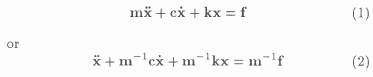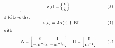 in terms of the system mass matrix m, the stiffness matrix k and the damping matrix c. x(t) is the system response for a given excitation f(t).