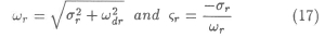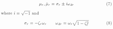 For underdamped systems, as usually the case for industrial structures, the natural frequency ωr and damping ratio ζr can be found from a complex conjugate pair of eigenvalues, say